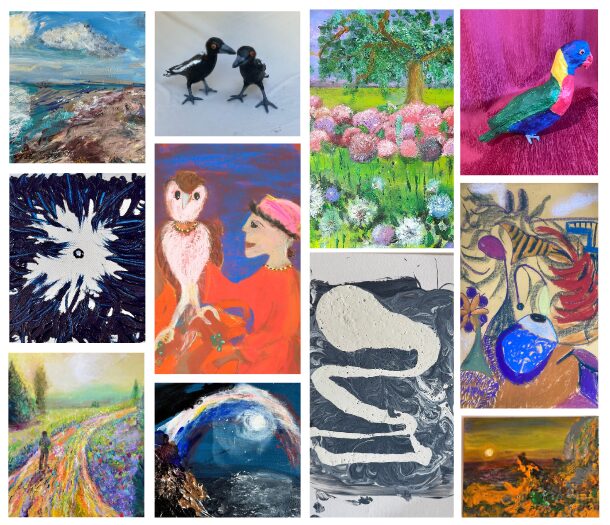 Dr Sara Partow’s artwork reflects her values of nature, kindness, connection, diversity, and resilience. Once a passionate drawer, vision loss led her to poetry, with four published collections before immigrating to Australia.